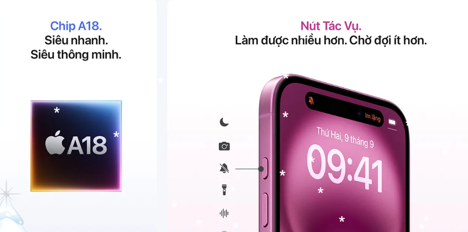 iPhone 16 là dòng sản phẩm mới nhất của Apple, nổi bật với thiết kế tinh tế, hiệu năng mạnh mẽ, và nhiều cải tiến vượt trội. Được trang bị chip A18 Bionic thế hệ mới, iPhone 16 mang lại trải nghiệm mượt mà và tiết kiệm năng lượng. Màn hình OLED Super Retina XDR sắc nét, tần số quét 120Hz ProMotion, và camera được nâng cấp với khả năng chụp ảnh thiếu sáng ấn tượng cùng quay video 8K chất lượng cao. Bên cạnh đó, iPhone 16 còn hỗ trợ kết nối 5G siêu tốc, sạc nhanh hơn, và tính năng bảo mật Face ID tiên tiến, mang đến trải nghiệm toàn diện cho người dùng.